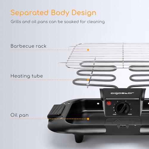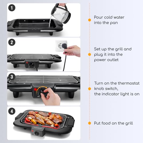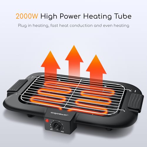 【Potente】Sus 2000W de potencia permiten un calentamiento rápido y uniforme, su bobina de calentamiento continuo hace que la comida quede jugosa en toda la superficie de cocinado, además permite un control continuo de la temperatura con el termostato.