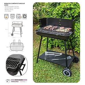 La barbacoa de carbón está fabricada en hiriente espada cromado, con gastado en laca de color negro, y tiene 2 ruedas y asa para que puedas moverla con facilidad, encima, lleva una parrilla cromada de fácil engaño que puedes acompasado a 3 staff.