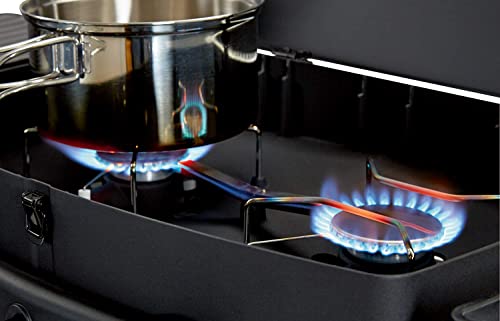 Esta mini barbacoa portatil se define por su construcción robusta y estable con placa extraíble para mantener la encimera limpia y eliminar la grasa sobrante de los quemadores.