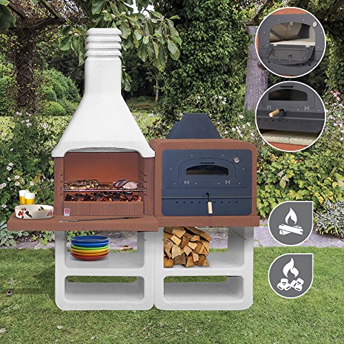 La combinación de Garten GRILL – Chimenea & – Horno Portofino tiene todo lo que su corazón desee. barbacoa horno el módulo está equipado con un acero inoxidable Horno, cuya parte frontal Fabricado en acero esmaltado de color negro es el horno está equipado con un termómetro y la puerta está provista de una ventana vidrio y cerámica. la cámara de Back (interior Tamaño: 60 x 35 cm) se suministra con cubierta protectora de placas de metal y piedra de arcilla de bomberos. la chimenea de barbacoa completa estructura se compone de un feuerfesten blähbe tono mezcla fabricado. además equipada con un alrededor de 114 cm de largo simspl medir y el nuevo sistema de espacio de bomberos Safe barbacoa con protección integrada fuego de micronit, es simplemente inmejorables. de 3 alturas de chimenea Parrilla 67 x 40 cm. Mide la tapa y la base se pueden configurar individualmente con cuarzo sarom especial Color, según su gusto personal, puedes. y horneado con el horno de barbacoa en el jardín chimenea & – Combinación Portofino como los profesionales. para el montaje se necesita el pegamento especial de barbeglue, se puede obtener en nuestra Kit de montaje o en el comercio especializado. objetos decorativos que no están incluidas en el envío. acero inoxidable Horno con termómetro y ventanas de vidrio y cerámica Horno Tamaño: 60 x 35 cm Parrilla chimenea fabricadas en blähbe tono mezcla incluye aprox 114 cm de largo simspl protectora para medir y caja fuerte con micronit y sistema de barbacoa parrilla regulable en 3 alturas de (67 x 40 cm) incluye campana extractora de metal