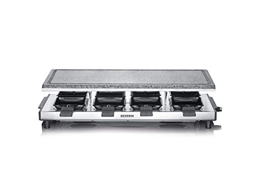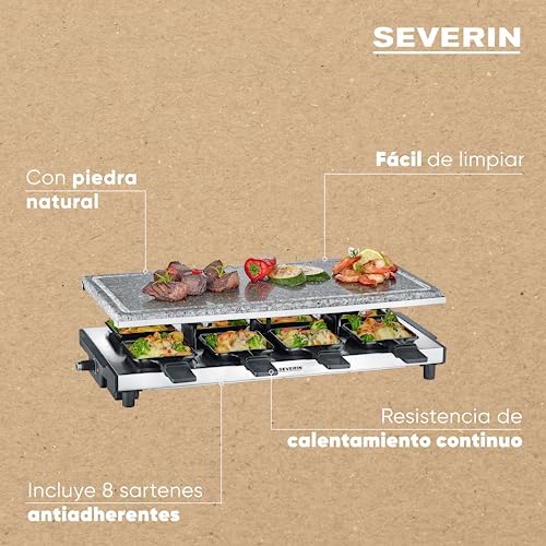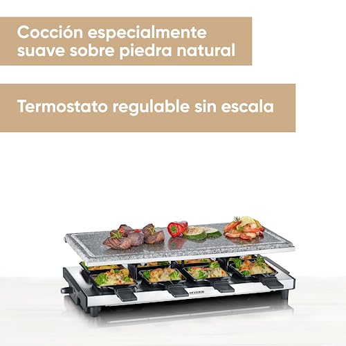 Detalles – SEVERIN Raclette-Grill con piedra de asar natural para 8 personas, 8 sartenes, diseño de acero inoxidable de alta calidad, 1500 W de potencia, German quality; número de artículo: 2374
