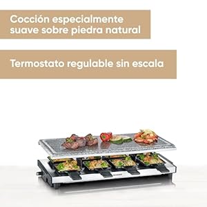 Almacenamiento prolongado del calor – La piedra natural de esta raclette Severin almacena bien el calor y cocina la comida suavemente, dejando los alimentos tiernos y jugosos.