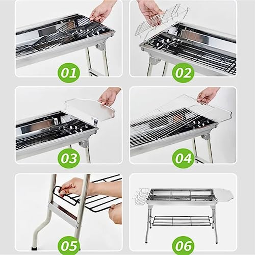 ☆ La parrilla viene con una instrucción fácil de seguir para el montaje sin estrés y sin herramientas, sólo tiene que aclarar y poner cuatro pies hacia debajo y doblar las piernas y está listo para ir con mango después de usar. Su diseñado con rejillas de ventilación de aire en ambos extremos de la parrilla para que el flujo de aire se puede controlar fácilmente y el exaltación distribuido uniformemente por toda la parrilla.