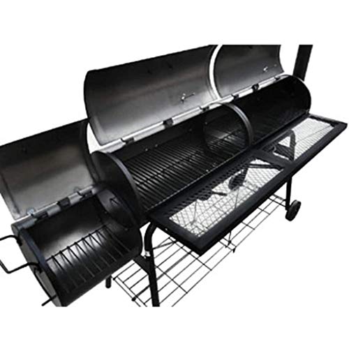 Esta barbacoa para ahumadero es una combinación de barbacoa tradicional y ahumadero. Le permite asar, fumar, asar y mantener sus platos calientes. En el compartimiento de fuego, la madera incubadora produce calor y humo que se distribuye uniformemente en el ahumadero. Si se adhiere a una forma de cocinar, la caja de fuego separada se puede usar para mantener el calor de su comida ya asada. El Nevada cuenta con un compartimento de fuego y dos habitaciones para fumadores. Carne, pescado, verduras, pizza e incluso pan se pueden preparar deliciosamente en el ahumadero. El sabor de su comida puede verse influenciado por su elección de madera. Los platos se pueden cocinar a baja temperatura, lo que garantiza que su pescado y carne permanezcan jugosos y deliciosos. Este ahumadero tiene dos compartimentos de parrilla muy espaciosos. Un medidor de temperatura le permite controlar la temperatura en el ahumadero. Un estante adicional para almacenar madera adicional se encuentra en la parte inferior. Nota: Se recomienda utilizar una tapa de barbacoa (no incluida) para protegerla de condiciones climáticas adversas.
