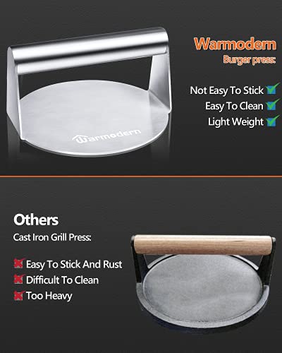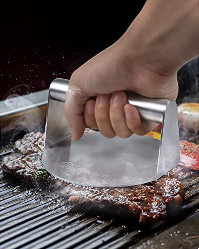 Masajeador de hamburguesas antiadherente: la prensa para hamburguesas Smash tiene una base lisa y plana que puede calentar los alimentos de manera uniforme y cocinar más rápido. No tienes que preocuparte de que sea fácil de pegar.